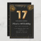 Palm Tropical de luxe Feuille 17ème anniversaire Invitation de fête. Adorable invitation de 17ème anniversaire dans un design ballons noir et or avec des feuilles de palmiers tropicaux dorés. Customisez avec les détails de votre fête et envoyez un courriel à la famille et aux amis les invitant à célébrer le 17e anniversaire avec style!