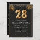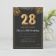 Luxe Golden Tropical Palm Feuilles 28e anniversaire de fête Invitation. Adorable invitation de fête de 28ème anniversaire dans un design de ballons noirs et or avec des feuilles de palmiers tropicaux dorés. Customisez avec les détails de votre fête et envoyez un courriel à la famille et aux amis les invitant à célébrer le 28e anniversaire avec style!