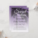 Un design moderne tropical moderne violet foncé doux invitation 16 ans avec un arrière - plan de palmier. Le violet vif s'évanouit sur un arrière - plan blanc. Le texte "Sweet sixteen" en blanc est défini dans un script moderne. Elégante invitation à la fête du 16ème anniversaire pour un Sweet sixteen glamour, parfait pour elle, la fashionista qui aime motif moderne, luxe et glamour avec un thème de plage tropicale. Conçu exclusivement pour vous par Happy Dolphin Studio.
