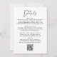 Faites une déclaration élégante avec ce faire-part de mariage de code QR tout-en-un moderne. Doté d'un palmier noir dessiné à la main près du sommet sur un arrière - plan blanc, ce design respire l'élégance tropicale. Personnalisez l'avant avec vos noms, date mariage, heure et emplacement. Le dos contient des détails supplémentaires sur le mariage, y compris un code QR pratique pour que les clients puissent facilement utiliser RSVP. Parfait pour la plage, la destination et les thèmes mariages modernes.