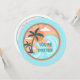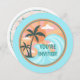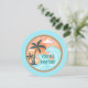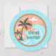Invitation d'anniversaire amusante sur le thème de la plage avec coloré rétro Illustration de palmiers verts, vagues bleues, soleil orange, et rayons de soleil jaunes et roses. Customisez ou personnalisez cette carte avec votre propre texte et envoyez-les à vos amis et à votre famille pour les invitations à votre barbecue ou à votre jardin de plage.
