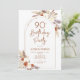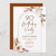 90e invitation de fête d'anniversaire en terre cuite brûlée orange et blanc. Bel design moderne minimaliste aux accents botaniques peints à la main. Caractéristiques pampas herbe, feuille, rose et typographie script. Thème du désert tendance bohème parfait pour l'automne, l'hiver, le printemps ou l'été. Vous pouvez choisir des invitations imprimées et/ou le modèle numérique de téléchargement instantané. Parfait pour une célébration féminine stylée du 90ème anniversaire.