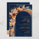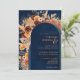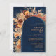 Invitation de mariage à code QR moderne et étonnante avec des éléments floraux en terre cuite de la pampa boho, teintes rustiques de chalet d'automne avec arche, sur fond bleu marine. Ajoutez l'URL de votre site de mariage au verso de la carte et le code QR sera mis à jour, ou supprimez si non requis. Cliquez sur Personnaliser/personnaliser plus loin pour inclure vos propres détails.