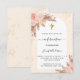 Un cadre d'arche et rose en marbre d'or imprimé comme arrière - plan. Décoré de fleurs roses d'or et de rose, de roses et d'herbe de pampas. Personnalisez et ajoutez un nom et des détails.