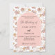 Un cadre en arc sur un motif de pampas herbe et fleurs roses et une croix dorée. Personnalisez et ajoutez vos noms et détails.