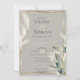 Cette invitation de fiançailles comprend l'élégant duo de plumes pampas herbe et de turquoises feuilles d'anthurium fumé qui sont des bords en or - combinez cela avec l'arrière - plan taupe de champignon riche et vous avez un thème mariage élégant et mémorable. La calligraphie de script moderne combinée à une disposition de police minimaliste et contemporaine crée un design attrayant. Il fait partie d'un ensemble mariage coordonné avec accessoires mariages assortis. Illustration originale de ©WhimsicalArtwork™ créée spécialement pour BarefootBride™