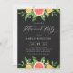 Invités Invitations à votre événement avec cette invitation à la fête de la retraite à thème agrumes. Il présente des illustrations aquarelle de pamplemousses, clémentines, fleurs florales et verdure sur arrière - plan en faux tableau. Cette invitation aux agrumes sera parfaite pour les soirées à thème agrumes et de retraite d'été. Personnalisez en ajoutant les détails de votre événement.