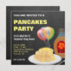 Invitation vos invités avec cette mignonne invitation au baby shower avec une assiette remplie de crêpes au sirop d'érable et de ballons sur un arrière - plan en damier. Ajoutez simplement les détails de votre événement sur cet modèle facile à utiliser pour en faire une invitation unique.