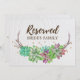 Ce panneau de mariage de succulentes florales rustiques boho "réservé" est parfait pour un mariage de thème rustique campagne ou désert. Le design est recto-verso (imprimé des deux côtés) et présente de jolies succulentes colorées vertes, roses et violettes disposées sur une couronne de branches et accentuées de confettis dorés faux. Utilisez ces cartes pour réserver des chaises ou des tables à votre cérémonie de mariage ou réception. Conçu avec soin par Miriam chez Fresh & Yummy Paperie. Pour des articles coordonnés, veuillez visiter ma boutique Zazzle :