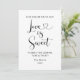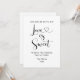 Une charmante pancarte de table de dessert de mariage avec la phrase ludique "La vie peut être salée, mais l'amour est doux" en calligraphie élégante avec un flourish de cœur. Parfait pour les bars à bonbons, les tables de cookies et les stations de friandises sucrées lors de votre réception. Le nom et le message de la famille personnalisables en font une touche finale personnelle pour votre célébration. Entièrement modifiable pour correspondre à vos détails de mariage.