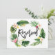 Pancarte RESERVED amusante et festive avec des fleurs à l'aquarelle (hibiscus, feuilles de palmier, orchidées, frangipanier) et une calligraphie moderne. Ce sera parfait pour un mariage, une douche de mariée et des événements similaires.