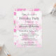 Un joli invitation de fête d'anniversaire personnalisé avec un panda kawaii winking, dans les tons rose et vert pastel. Ajoutez vos détails dans une variété de polices, y compris la calligraphie, et une jolie police en lettres.