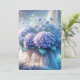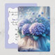 Un bel arrangement d'hydrangées violettes et de fleurs bleues est placé dans un panier tressé et drapé avec tissu de tulle pure pour mariage cérémonie de renouvellement de vow invitation. Tout le texte est modifiable.