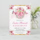 Aquarelle Fleurs roses et violettes en Panier avec Papillons design avec bordures de feuille d'or et confettis de parties scintillant