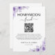 Purple Honeymoon Fund QR Code Sign, Faire-part de mariage Ce Honeymoon Fund QR Code Sign combine une élégance minimaliste moderne, ce qui en fait un complément parfait à votre mariage ou événement spécial! Customisez les polices, les couleurs de police et l'arrière - plan pour convenir à votre style unique sans effort.