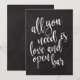Un panneau de mariage élégant et moderne, avec le texte "Tout ce dont vous avez besoin, c'est d'amour et de bar ouvert" dans une police de caractères extravertie, la texture de pinceau ajoute une sensation spontanée et ludique. La couleur de fond peut être personnalisée en fonction de vos besoins et préférences, veuillez me contacter si vous avez une demande spéciale.