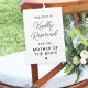 Honorez vos invités les plus importants avec ce panneau de siège réservé à l'écriture cœur moderne indiquant "Ce siège est aimablement réservé". La calligraphie fluide avec des accents de cœur délicats crée un look romantique et pourtant épuré, parfait pour réserver des places de cérémonie pour les membres de la famille ou les invités spéciaux. Le design intemporel noir et blanc se marie beau avec n'importe quel style de mariage. Tout le texte est entièrement personnalisable.