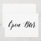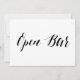 Panneau de mariage simple et élégant en noir et blanc de style calligraphique "Open Bar".
