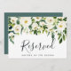 Indiquez les places réservées à votre mariage avec ce panneau floral chic de couleur bijou. Personnalisez-le avec deux lignes de texte personnalisé en écriture calligraphiée et en lettres majuscules modernes (représentées avec "Réservé" et le nom de l'invité avec la place réservée), encadré de fleurs aquarelles blanches et de feuillage vert.