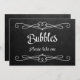 Style de tableau de bord simple et élégant "Bubbles s'il vous plaît prendre un" signe mariage. Il s'agit d'un panneau de carte plat de 5" x 7", sera vraiment élégant dans un cadre d'image.
