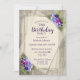 Une invitation à l'anniversaire sansy avec un arrière - plan à texture de bois créant une esthétique rustique, charmante ou capricieuse. Le contraste entre les fleurs délicates et colorées et les grains de bois naturels et robustes crée un look à la fois élégant et terre à terre. Ajoutez simplement vos informations pour customiser l'invitation d'anniversaire.
