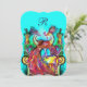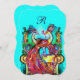 Invitation PAONS AMOUREUX MONOGRAMME Rouge Bleu sarcelle Vert