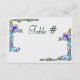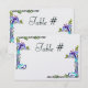 Cartes de numéros de table 3,5"x5" recto-verso frappantes sur un papier métallisé givré, ornées de corniches de paons et de vignes aux couleurs vives créées dans le style Arts & Crafts qui est devenu populaire à l'époque de Wm. Morris & Henry David Thoreau. Les porte-cartes peuvent être trouvés dans n'importe quel magasin d'articles de fête ou de fournitures d'art local. Se coordonne avec la collection de mariage Craftsman Peacocks de TheMarryingType. #zazzlemade