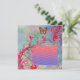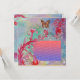 Capricieuses fleurs rouge vif de printemps, floraisons et fleurs en bleu-vert, sarcelle . Conception unique et peinture avec feuille d'or et d'argent.