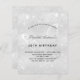 Une invitation d'anniversaire moderne, élégante et minimaliste. Arrière - plan métallique argenté Faux décoré de poussière de parties scintillant et un butterlfy comme filigrane. Personnalisez et ajoutez vos noms et les détails du mariage. Lettres de couleur noire.