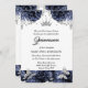 Une belle invitation à plat avec des roses bleus royaux; feuillage faux feuille argent; diamante; une belle tiare et faux papillons argent qui encadrent des modèles pour votre formulation personnalisée. Elles sont idéales pour des fêtes d'anniversaire ou des événements et occasions spéciaux. Customisez l'invitation pour qu'il convienne à votre célébration.