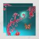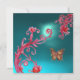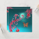 Papillons dorés élégants, uniques et colorés, fioritures rouge vif rose violet, fleurs et floraisons au printemps. Peinture à l'aquarelle avec feuille d'or et d'argent et pierre gemme aquamarine 3D brillante et vibrante. Graphismes 3D originaux et peinture par Bulgan Lumini (c). Facile à personnaliser avec votre propre texte en annonce nuptiale, carte de table, carte de remerciement, réunions de famille pour les fêtes de Noël, anniversaires sweet 16, fêtes de quartier en plein air, remise de diplômes, douches de fiançailles, anniversaire de mariage ou tout autre événement que vous souhaitez !
