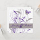 Cet élégant ensemble d'invitations présente un fond blanc brillant avec un motif floral gris. Au-dessus se trouve une couche de ce motif floral en lilas et violet avec un papillon en haut à droite ainsi que dispersés autour. Sur la partie inférieure se trouve une bande grise avec un grand symbole « et » assorti. Cet ensemble comprend des invitations, des cartes de remerciement, des présentoirs de numéro de table, des sceaux d'enveloppe, des étiquettes de vin, des classeurs et des étiquettes d'adresse de retour disponibles. Utilisez les autocollants de sceau d'enveloppe pour n'importe lequel de vos cadeaux DIY - ceux-ci sont disponibles en grandes et petites tailles ! Le classeur ferait un beau cadeau d'anniversaire.