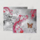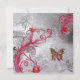 Papillons dorés fantaisistes, rouge vif , fioritures roses , volutes élégantes, fleurs et floraisons au printemps . Peinture florale colorée avec feuille d'argent par Bulgan Lumini (c).