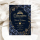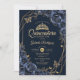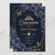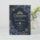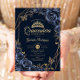 Invitation à la célébration de la Quinceanera bleu marine et or. Avec des papillons dorés, des roses d'aquarelle, des tiaras et des caractères de script. Parfait pour une élégante célébration de glamour de style princesse. Personnalisez avec vos propres détails. Invitations Zazzle imprimées ou téléchargement instantané modèle imprimable numérique.