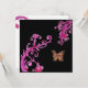 Invitation PAPILLON OR DORÉ , rose vif noir blanc