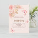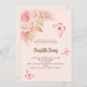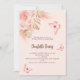Pour une Fête des mariées de style boho moderne. Un arrière - plan de pêche. Décoré de fleurs roses d'or et de rose, de roses, d'herbe de pampas et de papillons. Personnalisez et ajoutez un nom et des détails du parti. Retour : arrière - plan de couleur pêche et papillon.