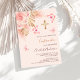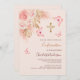 Un fond pêche. Décoré de fleurs, de roses, d'herbe de pampa, de papillons et d'une croix dorée rose gold. Personnalisez et ajoutez votre nom et vos détails.