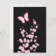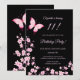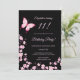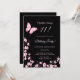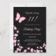 Cette carte d'invitation d'anniversaire mignonne présente de jolies fleurs de cerisier roses et un joli papillon rose vif sur fond noir.