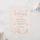 Cette élégante invitation à l'anniversaire à la floraison présente de jolis fleurs sauvages aquarellés et des papillons pastel sur un arrière - plan de champagne. Le design est d'inspiration bohème, avec un aspect fantaisiste. Utilisez les outils de conception pour customiser le texte, la police et les couleurs. Disponible en téléchargement.