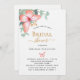 Un arrière - plan blanc chic. Décoré d'un papillon rose vif et doré rose, de feuilles d'eucalyptus vert à l'eau, de sprigs, de verdure et d'une fausse feuille d'or. Personnalisez et ajoutez le nom de la mariée à être et les détails du parti. Lettres noires et dorées.