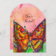 INVITATION PAPILLON ROUGE DANS FUCHSIA ROSE PAILLETES D'OR