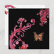 Papillons dorés fantaisistes, fioritures de fuchsia rouge vibrant, fleurs et floraisons au printemps. Peinture aquarelle originale avec feuille d'or et d'argent par Bulgan Lumini (c). Facile à personnaliser avec vos initiales et votre propre texte en tant que faire-part de mariage, carte de table, carte de remerciement pour enterrements de vie de jeune fille, anniversaires sweet 16, fêtes, remise de diplôme, fêtes de fiançailles, anniversaire de mariage ou tout autre événement que vous souhaitez ! com