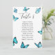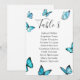 Papillons aquarelle bleue Plan de table de mariage. Choix élégant pour les mariages d'été. Fait partie d'une collection de mariage. Carte avec choix de repas.