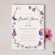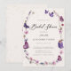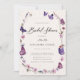 Une élégante invitation à la douche nuptiale à cadre fleuri de boho avec des fleurs sauvages (cosmos et autres fleurs sauvages et herbes communs) en aquarelle, papillons violets et roses avec des asperges d'or (ce sont des effets numériques, pas de vrai papier ou parties scintillant !) et de la calligraphie moderne, avec un fleur sauvage rose sur le dos et un arrière - plan moderne en ivoire. Elégant et chic, il est l'invitation parfaite pour un jardin déjeuner de mariée de jardin, un brunch ou une fête, ou pour toute mariée qui aime les fleurs sauvages, papillons et rustiques, modèles de pays avec une touche de boho romantique.
