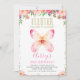 Pink Floral Butterflies Gold Parties scintillant Texte Anniversaire Invitation Sweet butterfly thème n'importe quel âge invitation d'anniversaire avec un joli papillon aquarelle, quelques arrangements floraux roses et faux or parties scintillant cap. Ce design d'invitation aux papillons sucrés est mignon façon pour les invités invitations à votre petite fille papillon fête d'anniversaire thème papillon.