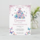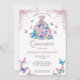 Rose Gold Sparkling Papillons Gown Blush Floral Quinceanera Invitation