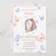 Cette première invitation d'anniversaire avec des papillons aquarelle et de la licorne mignonne est parfaite pour votre petit sauvage!