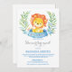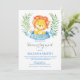 Invitation par courrier pour une Baby Shower sur le thème du Lion Garçon. Invitation virtuelle pour une Baby Shower. Longue distance. Carte bleue et grise. Invitation pour une Baby Shower garçon. Fleur et feuille florale aquarelle. Fond blanc. Pour une personnalisation supplémentaire, veuillez cliquer sur le bouton "Personnaliser" et utiliser notre outil de conception pour modifier ce modèle.