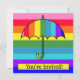 Carte d'invitation pour un parapluie à rayures arc-en-ciel mignon. Ajoutez les informations sur l'événement / la fête au verso de la carte. Convient pour les anniversaires, les événements de la Journée de la fierté et plus encore.