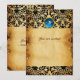 Invitation PARCHEMIN bleu monogramme pierre précieuse damasqu